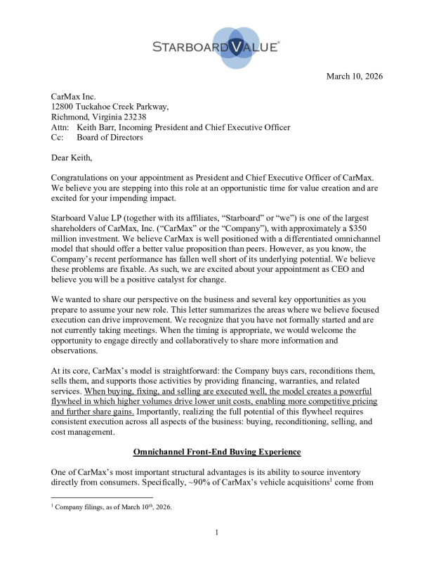 Starboard Value LP Letter to KMX Incoming CEO